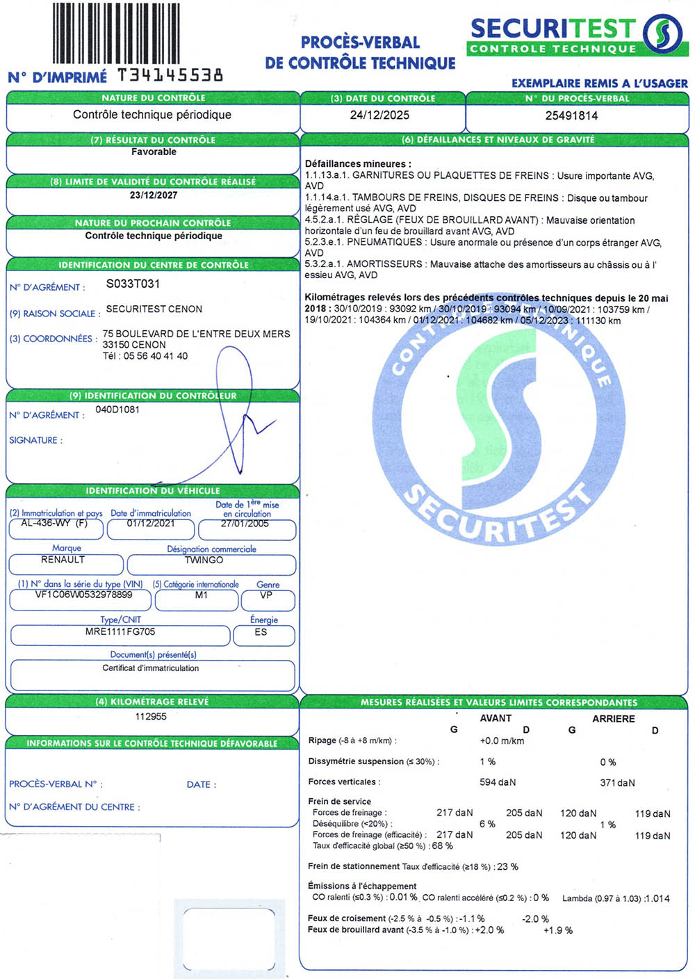 Le véhicule ne bénéficie d’aucune garantie, hors la garantie légale contre les vices cachés.